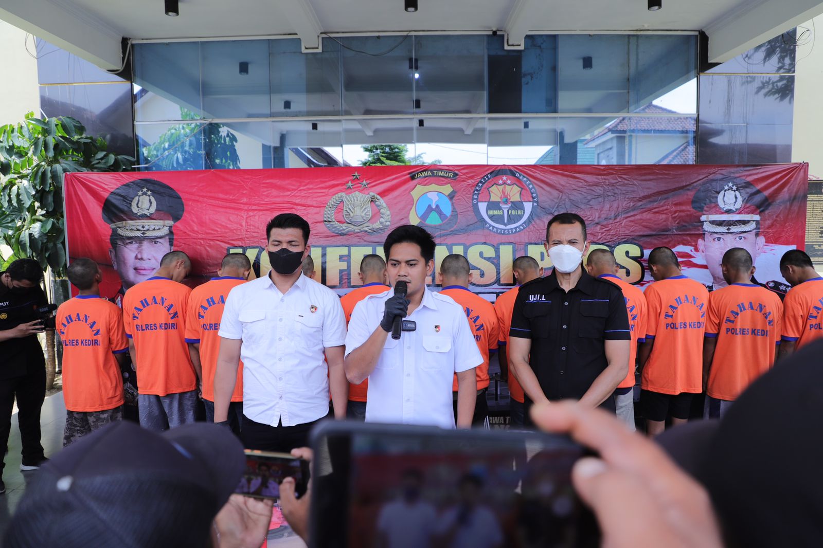“Satreskrim berhasil mengungkap 5 kejadian yang meresahkan masyarakat dimana semua kejadian ini saling berkorelasi dan melibatkan berbagai perguruan silat yang ada di Kabupaten Kediri, baik korban maupun pelakunya,” jelas AKP Rizkika kepada awak media.