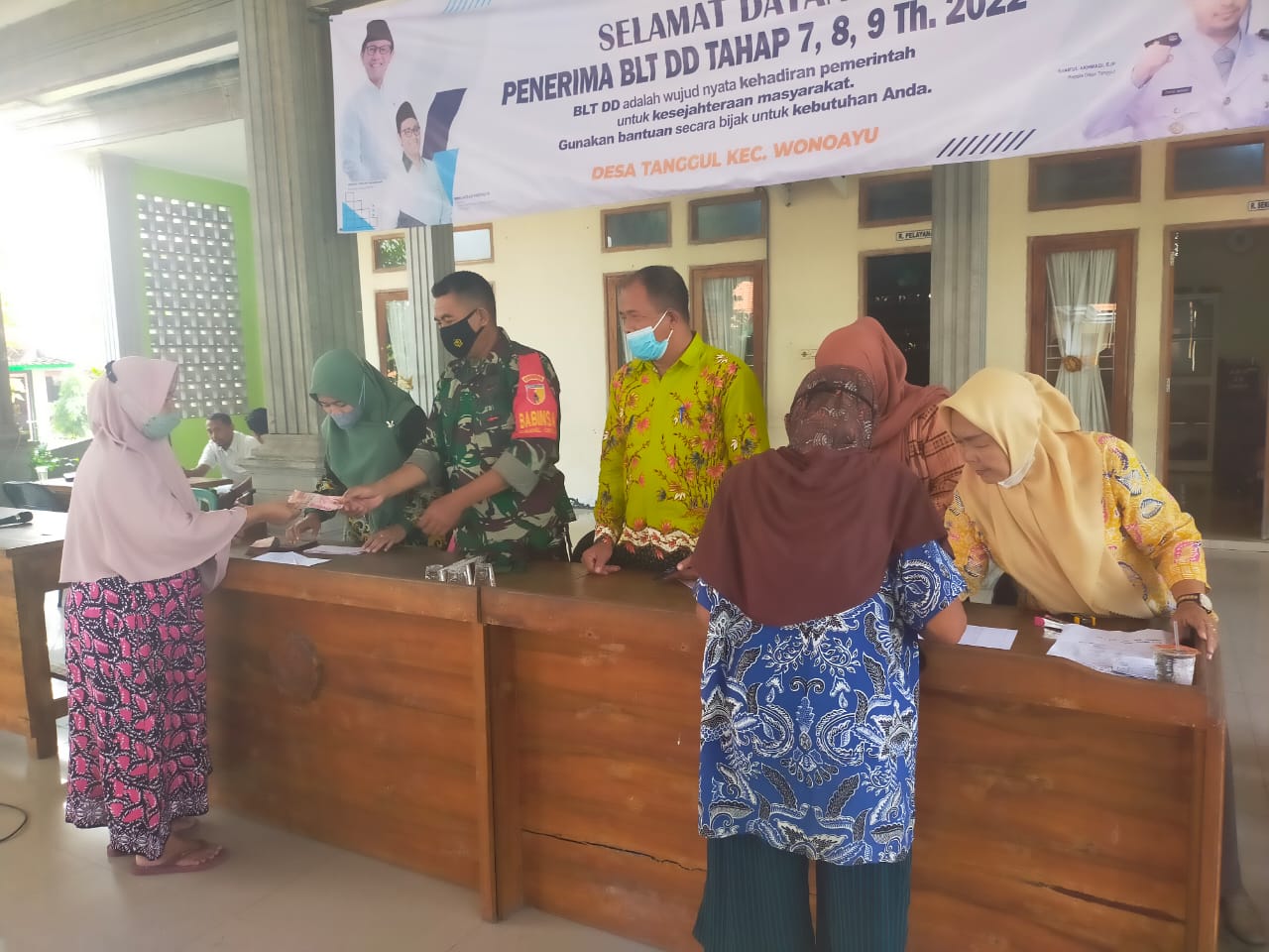 Ankasapost.id Sidoarjo – Selasa 04/10/2022 Babinsa Koramil 0816/13 Wonoayu Serma Rudi S melakasanakan pendampingan dalam rangka pembagian (Bantuan Langsung Tunai Dana Desa) BLT-DD tahap Tiga dibulan “Juli, Agustus dan September” kepada warga Pra sejahtera sebanyak 101.KK bertempat di Balai Desa Tanggul Kec Wonoayu,