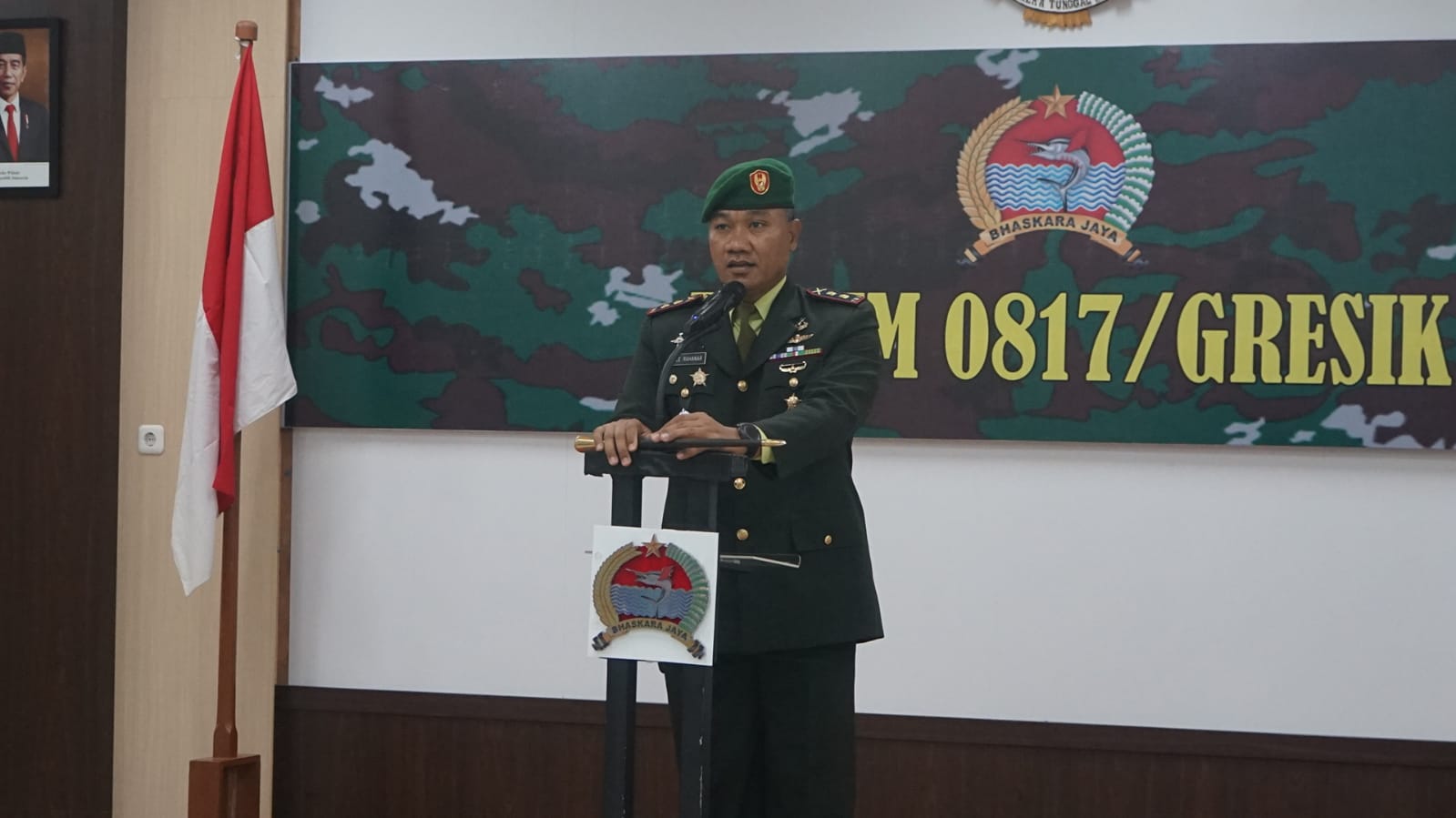Dalam sambutannya, Dandim Gresik menyampaikan bahwa, “Saya atas nama pribadi mengucapkan selamat kepada para anggota yang pada hari ini telah mendapatkan kehormatan dengan kenaikan pangkat satu tingkat lebih tinggi, semoga dengan pangkat yang baru seluruh rekan dapat menjalankan amanah dengan lebih baik dan profesional, dan kedepannya lebih sukses dalam melaksanakan segala tugas yang diberikan.”tuturnya.