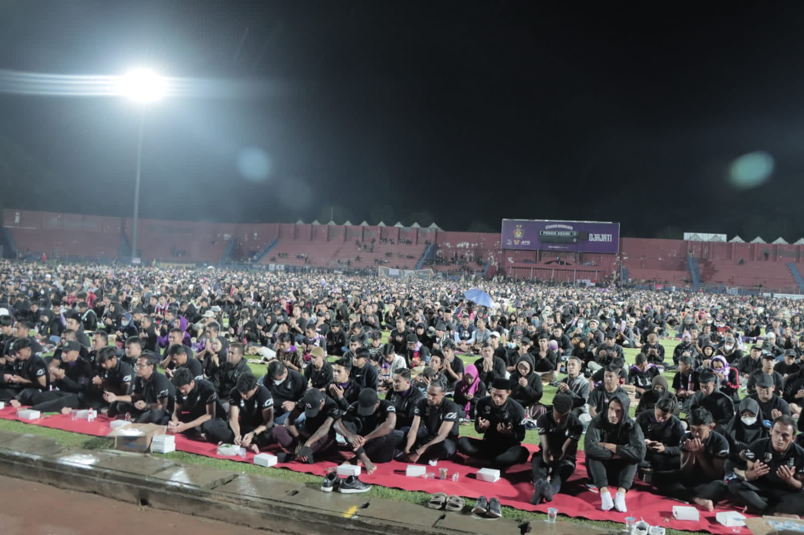 Ankasapost.id Malang – Suasana haru dan penuh kedamaian tersaji di stadion Brawijaya Kediri, Kamis (6/10) malam dalam acara Doa Bersama untuk Tragedi Kanjuruhan. Acara doa bersama ini digelar oleh Aliansi Suporter Persik bekerjasama dengan manajemen Persik Kediri , Polres Kediri Kota , Pemkot Kediri serta dihadiri oleh perwakilan Aremania, Pasopati, Panser Biru dan didukung penuh oleh Athletes For Good (AFG).