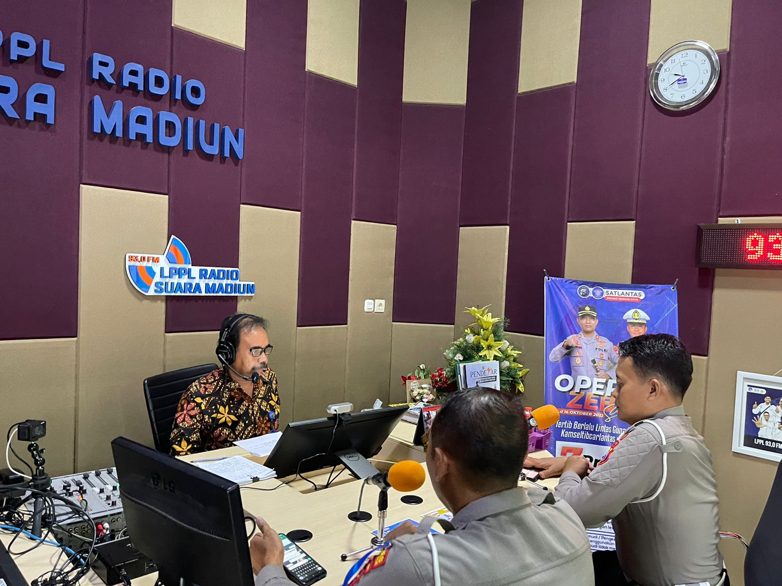 Diawal pemberlakuan operasi Zebra Semeru 2022, Personil Satlantas Polres Madiun Kota yang dipimpin Iptu Agus Wibowo kembali melakukan sosialisasi dan edukasi kepada masyarakat melalui siaran LPPL Radio Suara Madiun dalam program acara Spektrum Kamtibmas, Selasa (11/10/22).