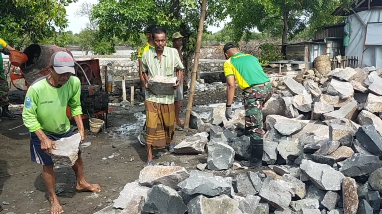 Ankasapost.id Gresik – TPT (Tanggul Penahan Tanah) yang berada di Desa Kramat Kecamatan Bungah Kabupaten Gresik, mulai dikerjakan oleh Personil Satgas TMMD bersama masyarakat sekitar, pembangunan TPT merupakan salah satu obyek sasaran yang sudah masuk dalam Program Fisik TMMD.