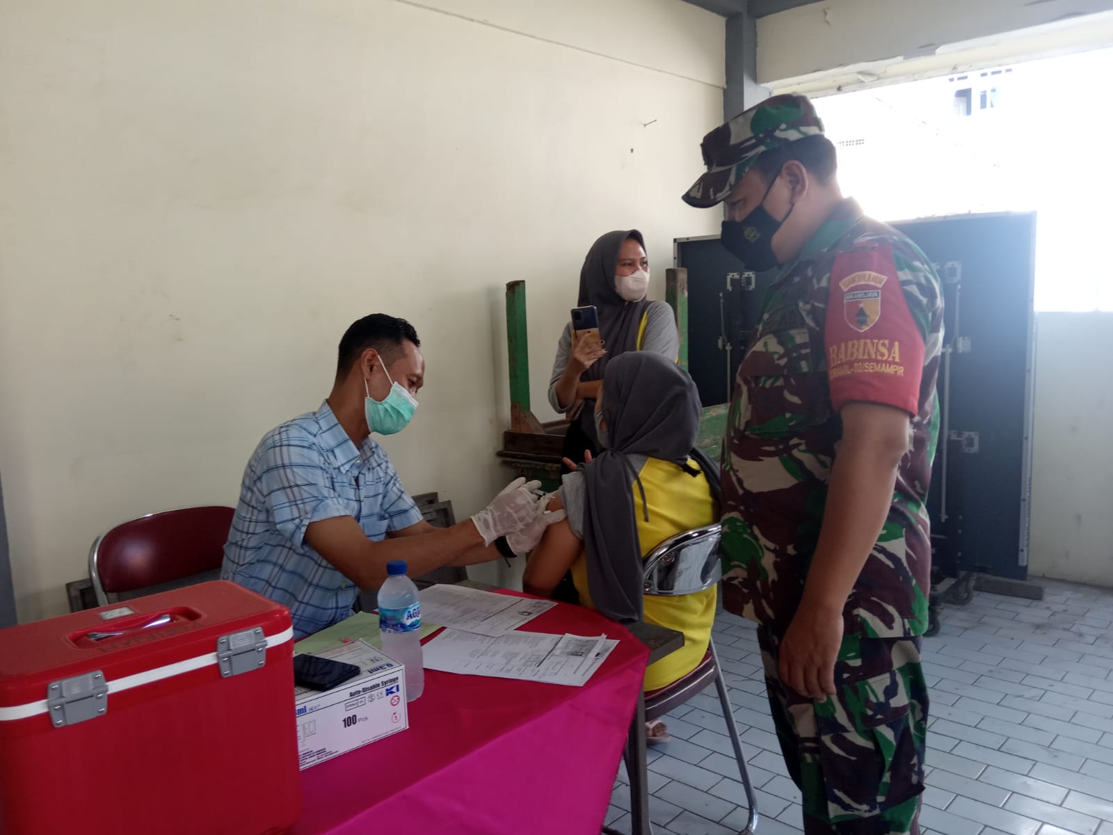 Turut hadir dalam Kegiatan Vaksinasi, Babinsa Kelurahan Pegirian Koptu Mardi Ismanto dan tim Vaksinasi Covid-19 dari Puskesmas Pegirian. (Ms)