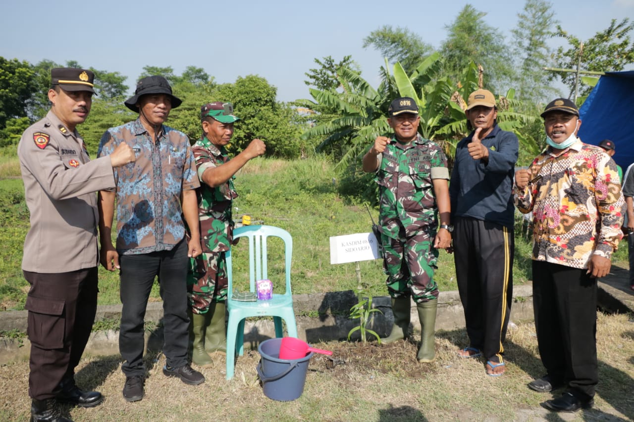 Kegiatan selanjutnya yaitu penanaman bibit pohon secara simbolis oleh Kasdim 0816/Sidoarjo dan didampingi oleh Forkopimka Kecamatan Krembung dan dilanjutkan penyemprotan padi dengan jenis obat virtako dan dupont prevathon secara serentak oleh Gapoktan Desa Kandangan yang didahului oleh Kasdim 0816/Sidoarjo. Kegiatan ini bertujuan untuk mempererat tali silaturrahim kepada petani, meningkatkan ketahanan pangan, membantu petani untuk bertanam padi, Kegiatan diakhiri dengan ramah tamah pada pukul 08.20 WIB.