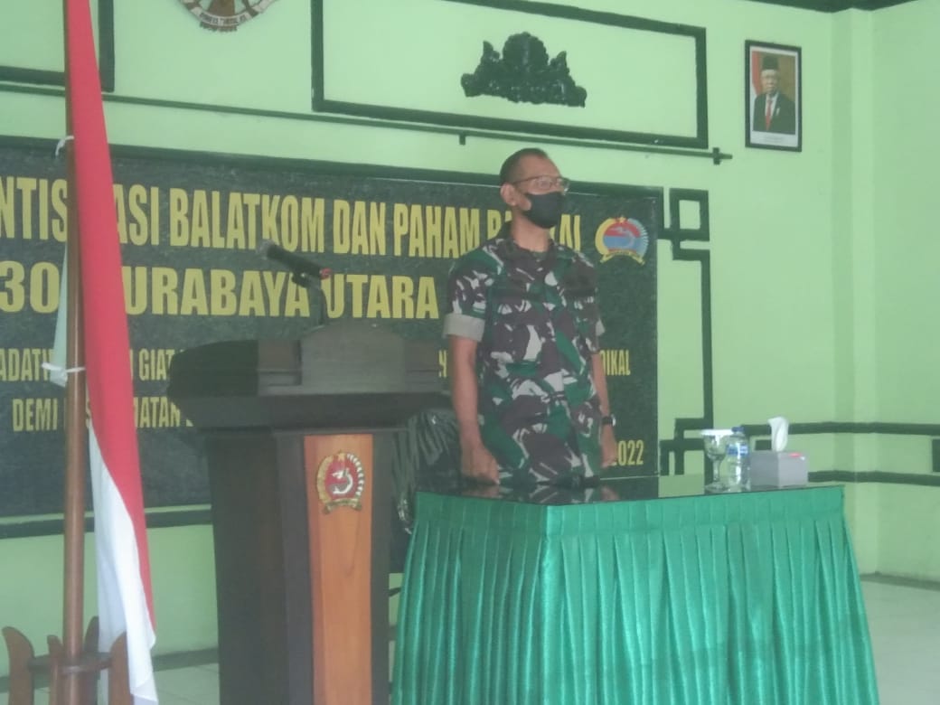 Ankasapost.id Surabaya – Dalam rangka mengantisipasi berkembangnya Balatkom dan Paham Radikal di lingkungan TNI AD, Kodim 0830/Surabaya Utara menyelenggarakan kegiatan pembinaan antisipasi Bahaya Laten Komunis (Balatkom) dan Paham Radikal, bertempat di Aula Makodim Jl. Gresik No. 52, Perak Barat Kecamatan Krembangan, selasa (8/11/2022).