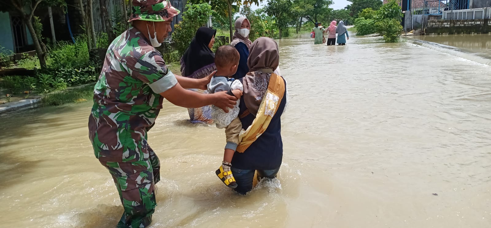 Sambungnya, “Berdasarkan pantauan Babinsa di lapangan, untuk area persawahan terendam 10 – 50 Cm Seluas 5 – 40 Ha, Jalan desa 5 – 40 Cm. Sepanjang 100 – 800 M, Pemukiman warga sekitar 10 – 120 rumah setinggi 5 – 20 Cm dan Jalan Raya ketinggian air 5 – 30 Cm sepanjang 100 – 500 M.”ujarnya.