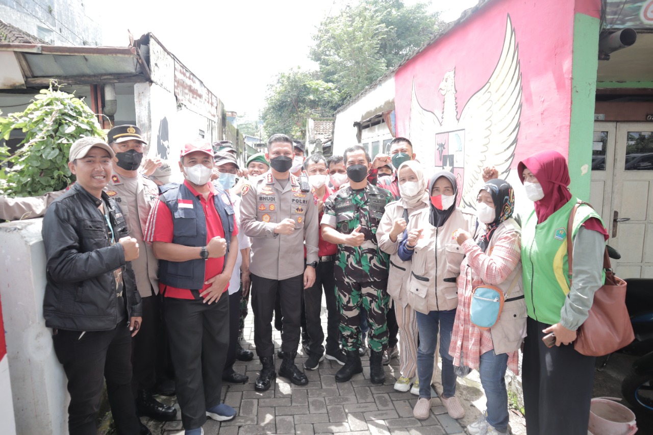 Kapolresta Malang Kota Kombes Pol Budi Hermanto bersama Dandim 083 Kota Malang, PPNI Kota Malang, dan rombongan mengunjungi rumah perwakilan penyandang disabilitas di wilayah Lesanpuro kecamatan. Kedungkandang Kota Malang.