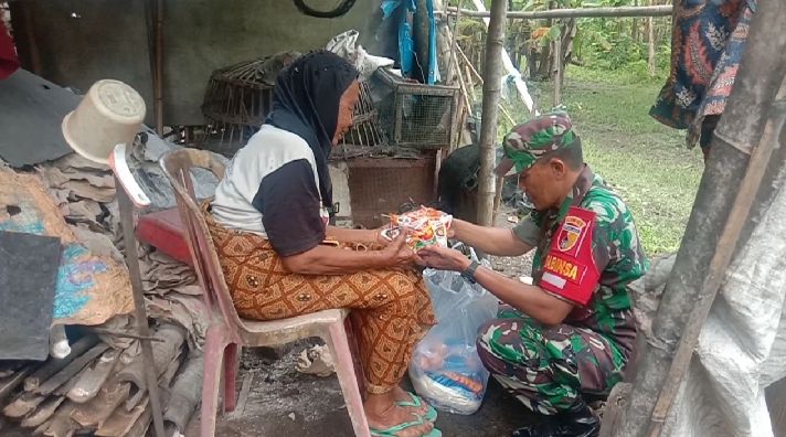 “Salah satunya seperti yang dilakukan Babinsa Koramil 0816/15 Sukodono Serka Hadi Suwito Desa Cangkringsari, Kecamatan Sukodono, Kabupaten Sidoarjo ini mengunjungi dapur warga binaannya”. Warga yang dikunjungi adalah Mbok Rukanah (86 Tahun), seorang janda yang hidup sebatang kara di Dusun Cangkringan, Desa Cangkringsari. (2/12/2022)