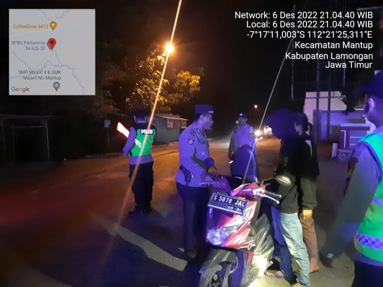 GIAT KAPOLSEK MANTUP MEMIMPIN PELAKSANAAN RAZIA CIPTA KONDISI MULTI SASARAN MENJELANG PERGANTIAN TAHUN BARU 2023 RAYON IV DI JALAN RAYA SPBU DESA MANTUP