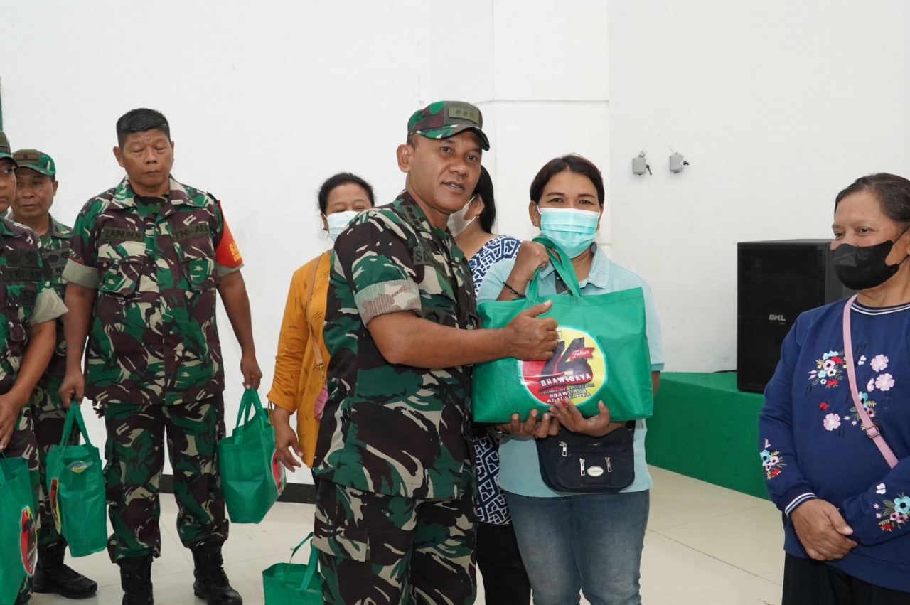 Masih kata Danrem dalam amanatnya tersebut, “Pada kegiatan Baksos ini juga dilaksanakan pembagian sembako kepada masyarakat yang membutuhkan, sebagai wujud kepedulian dan memupuk jiwa sosial TNI terhadap kesulitan rakyat, TNI akan selalu hadir di tengah-tengah rakyat untuk memberikan yang terbaik”, tuturnya.