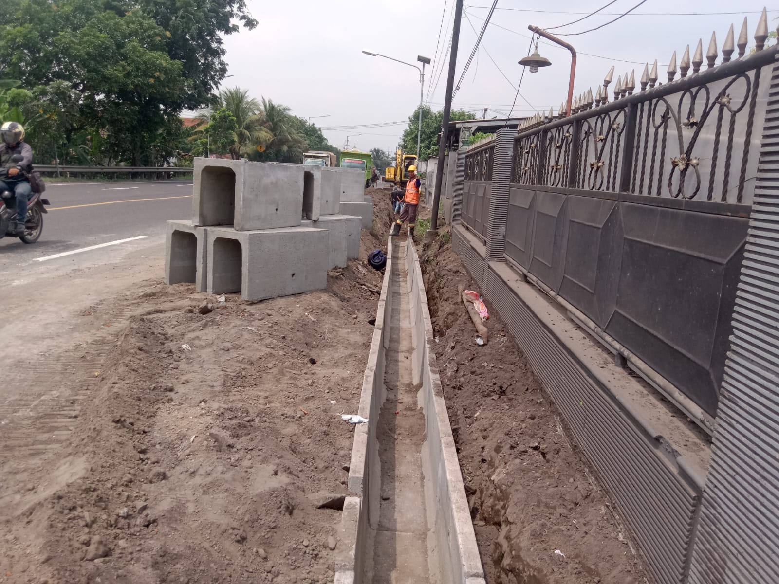 Dalam pemasangan gorong gorong pembuangan air di waktu musim hujan pada saat ini dan tentunya di pinggir jalan raya Balong bendo kabupaten Sidoarjo Jawa timur dan di laksanakan proyek dari pekerjaan umum ( PU,PR ) propinsi Jawa timur guna untuk memperlancar para pengendara yang melewati jalur arah Mojokerto Surabaya