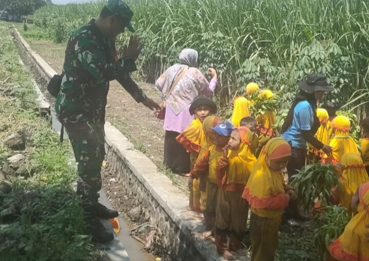 Ankasapost.id Sidoarjo – Babinsa Koramil 0816/05, Serma Edi Beserta Staf Balai desa Bapak Arif memberikan pengenalan tentang tata cara bercocok tanam kepada Taman Kanak-Kanak (TK), Kecamatan tulangan, Kabupaten sidoarjo, selasa (20/12/2022)