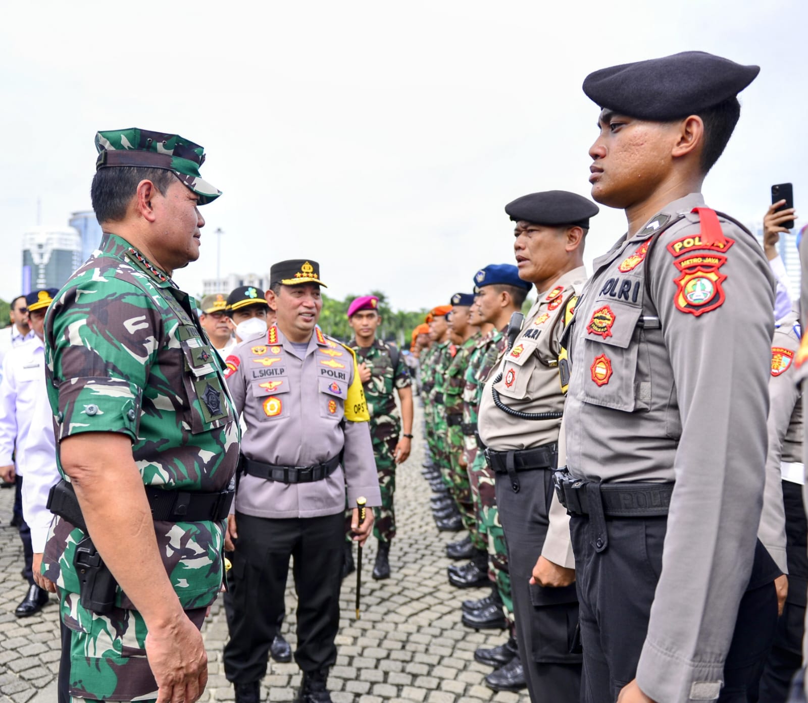 “Hari ini kita melaksanakan Apel Gelar pasukan gabungan dari TNI, Polri dan seluruh stakeholder yang terkait untuk memastikan bahwa personel siap untuk melaksanakan kegiatan pengamanan dan juga tentunya kesiapan dari sarana prasarana ataupun alutsista,” kata Sigit.