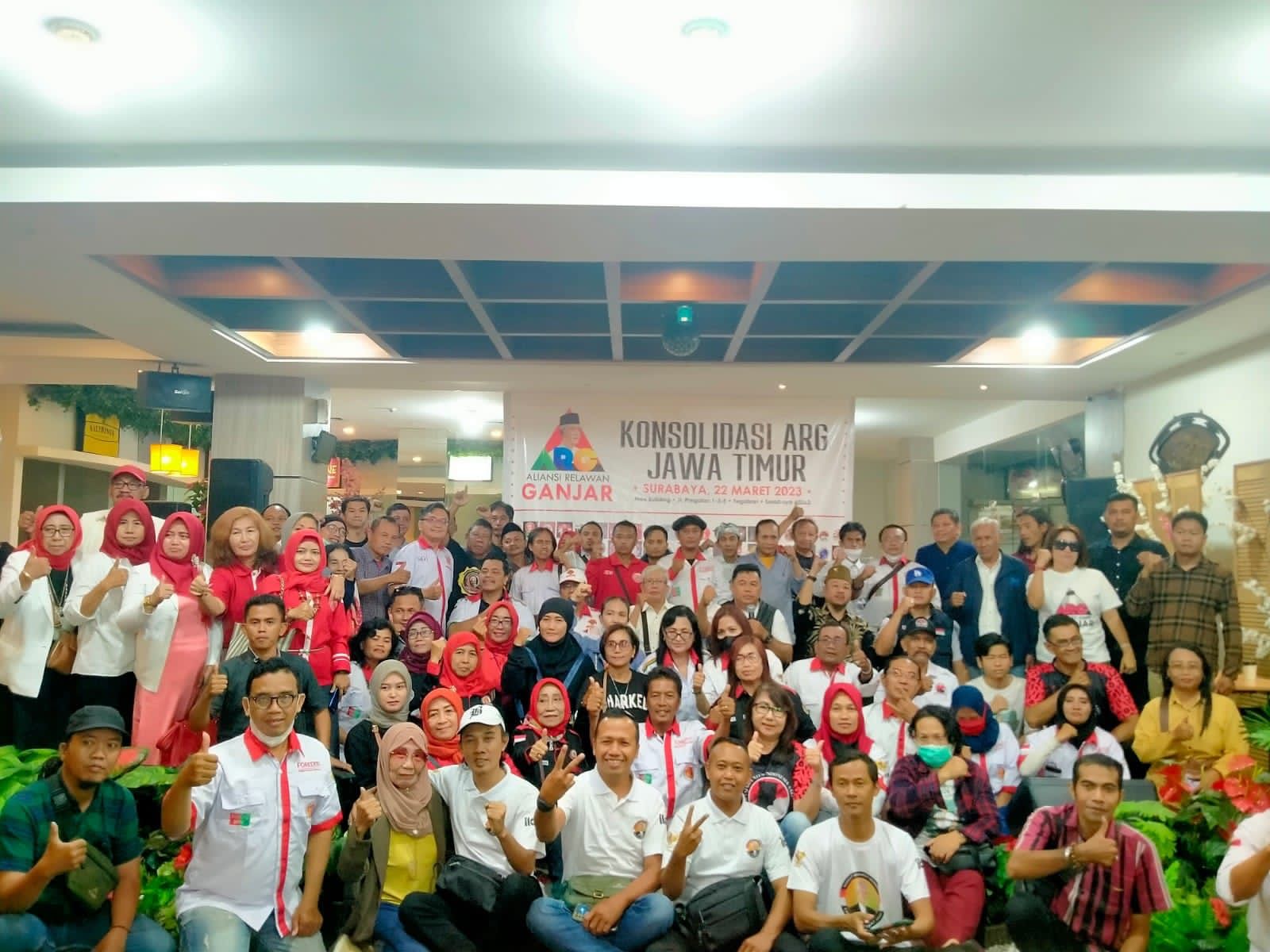 Ankasapost.Id-Surabaya, 22/4/23,- Kekompakan organ-organ relawan Ganjar Pranowo kembali dibuktikan dengan suksesnya konsolidasi akbar aliansi relawan ganjar (ARG) di gedung Max Building jl.Prenggolan No. 1-5, Kecamatan Tegal sari, Kota Surabaya siang hingga petang tadi.