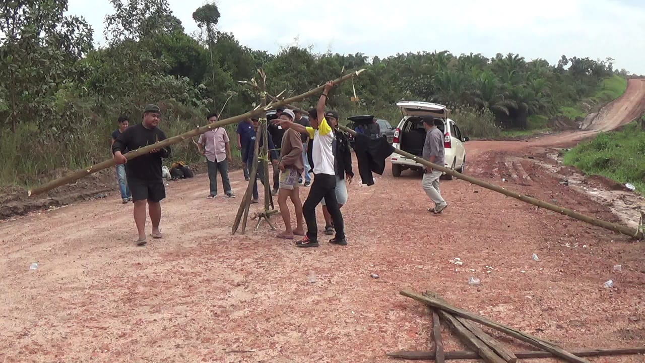 Penutupan jalan ini masih sebatas semi permanen, dimana hanya menggunakan kayu batang pohon akasia selebar kurang lebih 6 meter dan di tancapkan ke tanah.