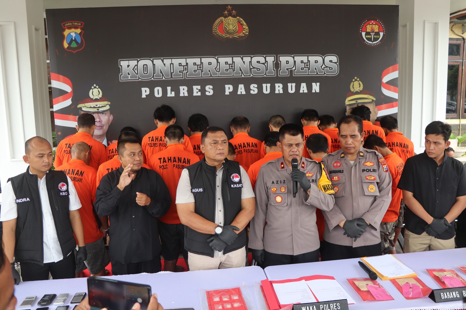 Berhasil Amankan Pelaku Kekerasan Dan Penyalahgunaan Narkoba, Polres Pasuruan Gelar Press Release