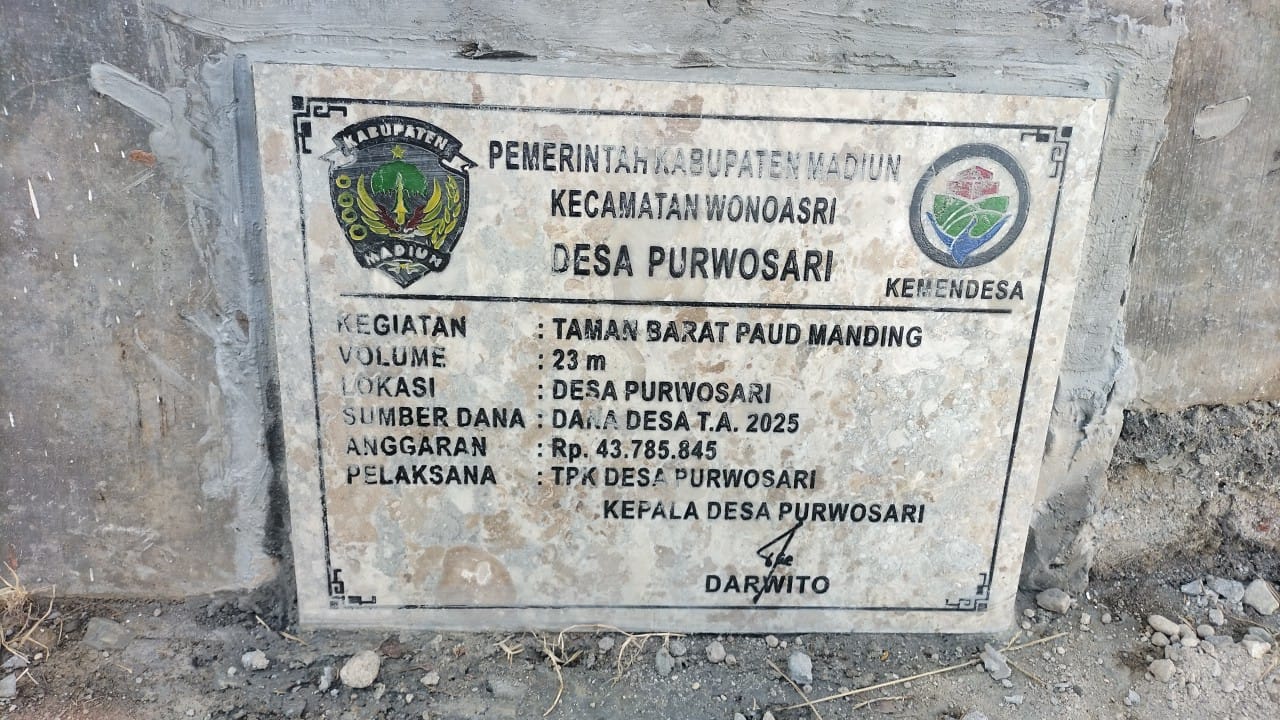 Dalam hal ini, Darwito Kepala Desa Purwosari kepala awak media ankasapost.id menyampaikan, kegiatan paving blok ini merupakan wujud kepedulian pemerintah desa,terhadap generasi bangsa dimana anggaran yang bersumber dari Dana Desa(DD) tahun 2025,yang menelan anggaran Rp 43.785.845,Senin(26/5/2025).