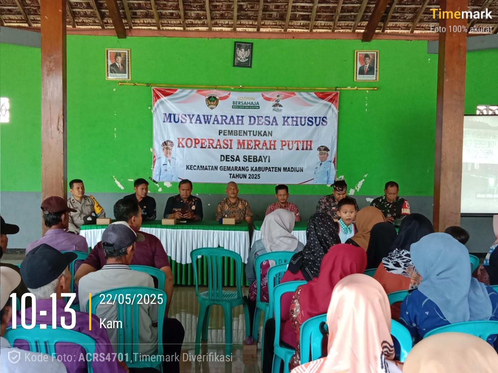 Madiun,AnkasaPost.Id-menindaklanjuti Instruksi Presiden RI nomor 9 tahun 2025, Pemerintah Desa Sebayi,Kecamatan Gemarang ,Kabupaten Madiun menggelar Musdesus pembentukan Koperasi Desa Merah Putih. Kegiatan yang diselenggarakan di Aula Kantor Desa tersebut dihadiri Camat Gemarang ,Kepala Desa Putut Suwarno beserta perangkat desa, Dinas Perindustrian, Perdagangan, Koperasi, Usaha Kecil Menengah Kabupaten Madiun, Ketua BPD dan anggota BPD, Babinsa, Bhabinkamtibmas, Ketua RT/RW dan tokoh masyarakat.