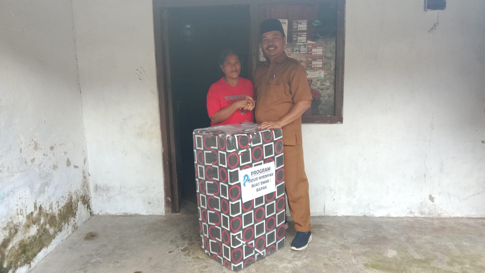 Wahyudiarto selaku Kepala Desa Plumpung secara langsung menyerahkan bantuan Kasur kepada Bu Sulasmi warga Rt 07 Rw 01 Desa Plumpung yang menerima bantuan pada hari ini.