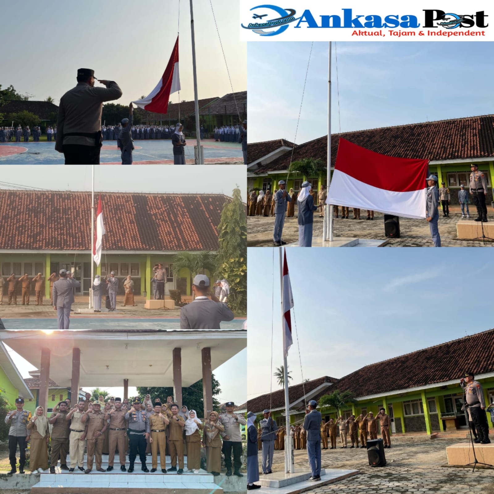 Lampung Timur, Ankasa Post Id. Dalam rangka menciptakan Kantibmas di lingkungan Sekolah terutama di Tingkat siswa SLTA Kapolsek Metro Kibang AKP Bambang Dwi Setyawan melakukan giat upacara bersama satuan Pendidikan di Sekolah menengah Atas Negeri 1 Kibang Senin 11 Agustus 2025.
