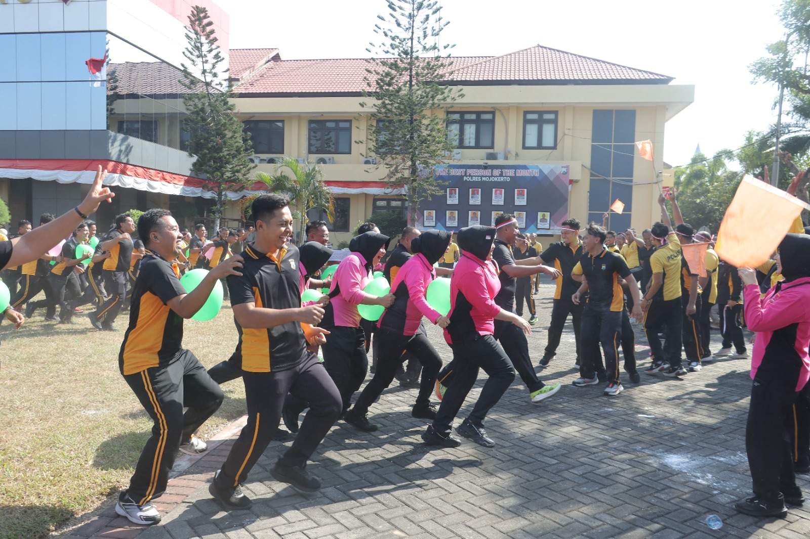 Kegiatan ini berlangsung meriah di halaman Mapolres Mojokerto dan diikuti ratusan peserta dari berbagai kalangan, termasuk anggota Polri, TNI, dan Bhayangkari.