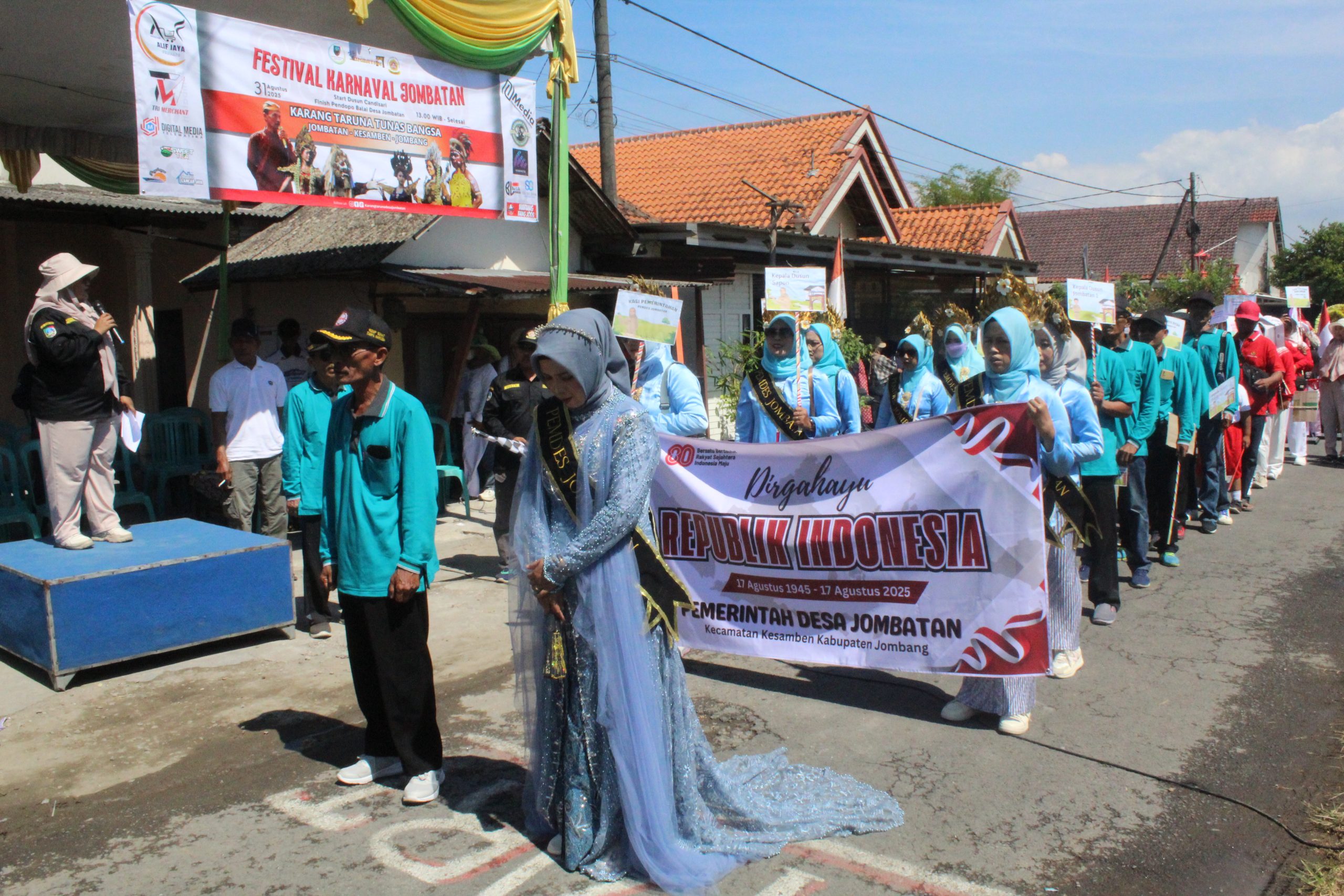 Jombang, Ankasapost.Id-Masih dalam nuansa memperingati HUT RI Ke-80, Desa Jombatan, Kecamatan Kesamben, Kabupaten Jombang menggelar acara karnaval pada Minggu (31/08/2025).