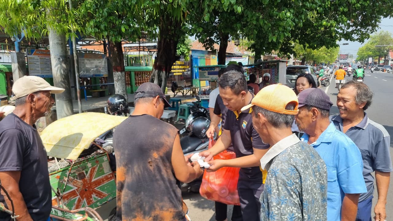 Polres Mojokerto Kota Bagikan Puluhan Bubur Kacang Hijau ke Tukang Becak