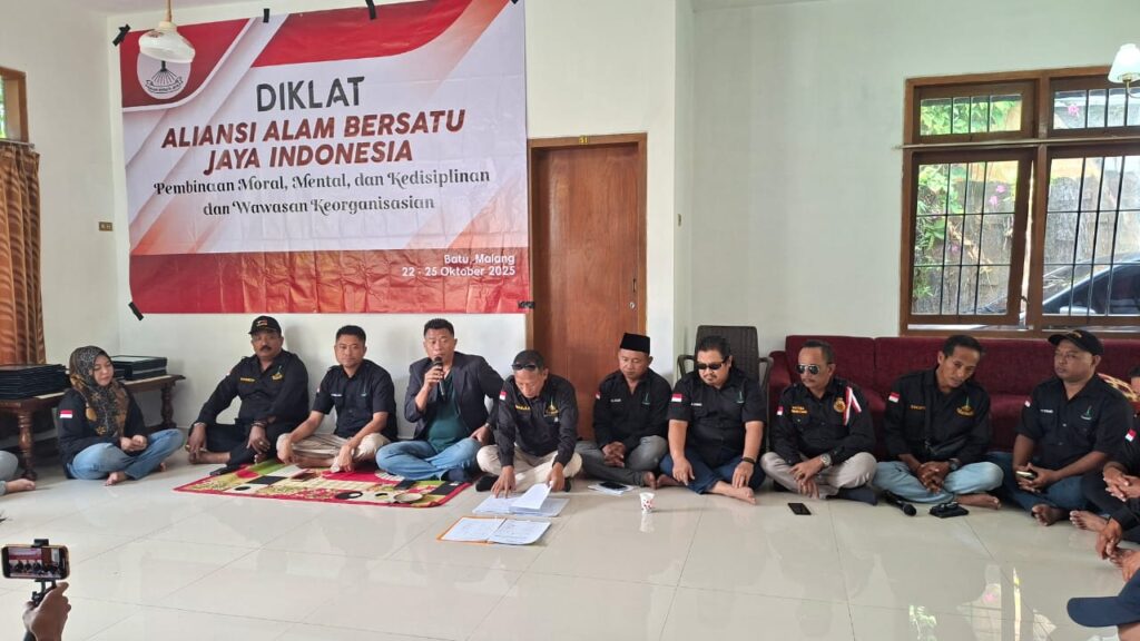 BATU,AnkasaPost.Id– Aliansi Alam Bersatu Jaya Indonesia melaksanakan kegiatan Pendidikan dan Pelatihan (Diklat) bertema “Pembinaan Moral, Mental, Kedisiplinan, dan Wawasan Keorganisaian” di salah satu villa di Kelurahan Songgokerto, Kecamatan Batu, Kota Batu selama 4 hari pada 22 hingga 25 Oktober 2025.
