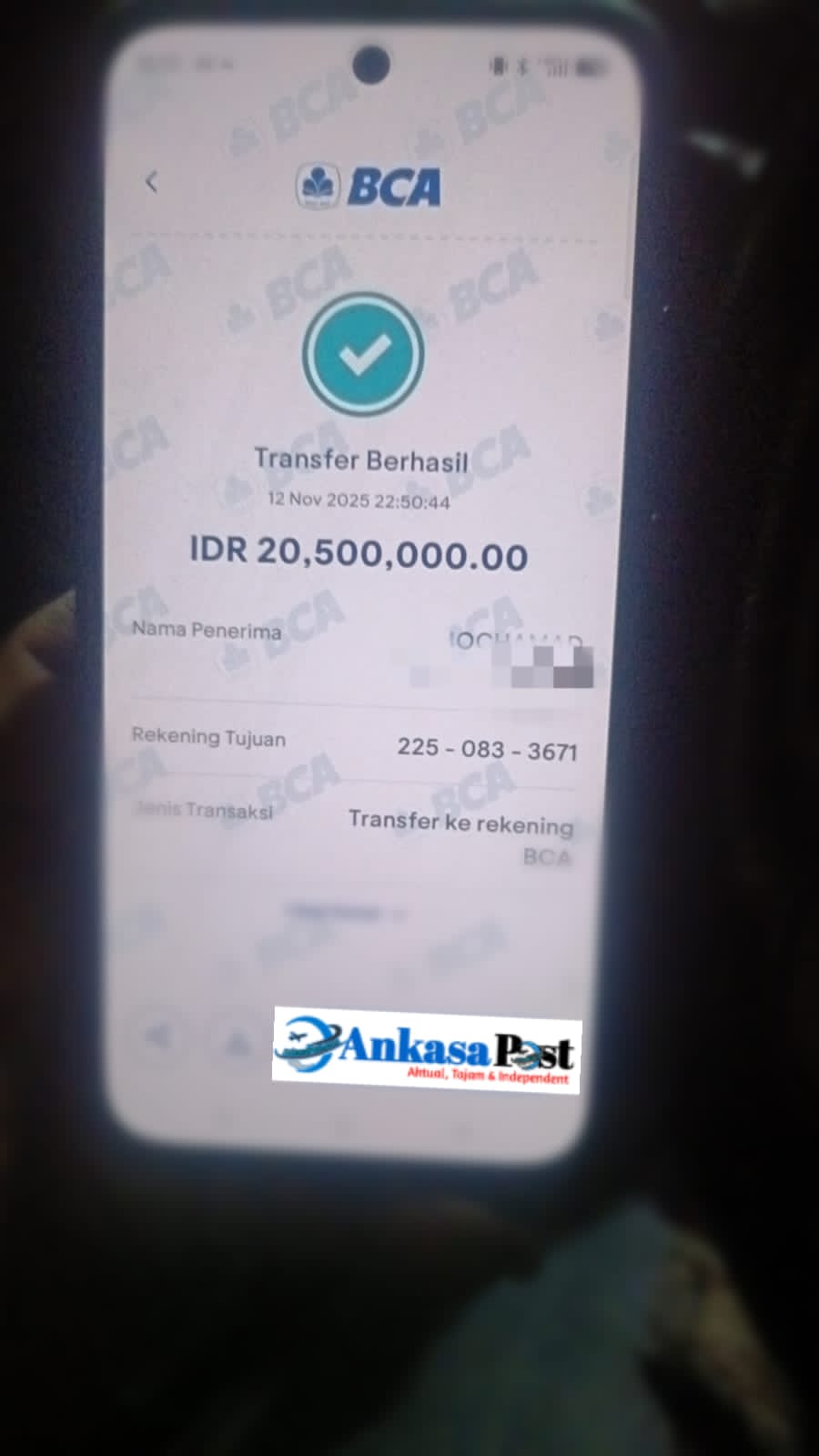 “Uang sejumlah Rp.20.500.000 transfer ke rekening MS alias AS, dan Rp.20.000.000 cash saya serahkan ke MS alias AS,” ungkapnya.
