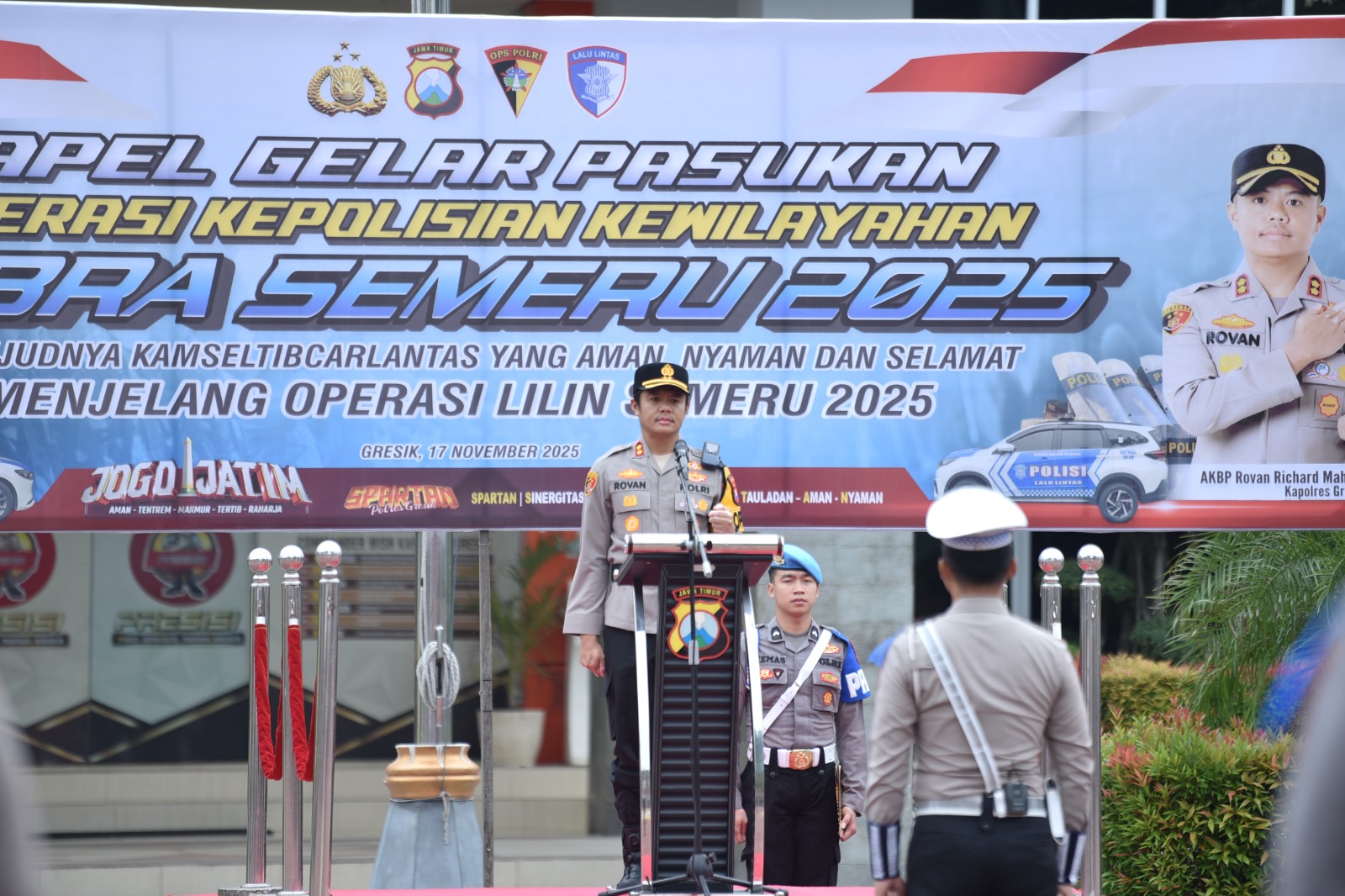 Apel yang dipimpin langsung oleh Kapolres Gresik AKBP Rovan Richard Mahenu. Kegiatan ini menjadi bentuk pengecekan akhir kesiapan seluruh personel sebelum operasi diterapkan secara menyeluruh di wilayah hukum Polres Gresik.