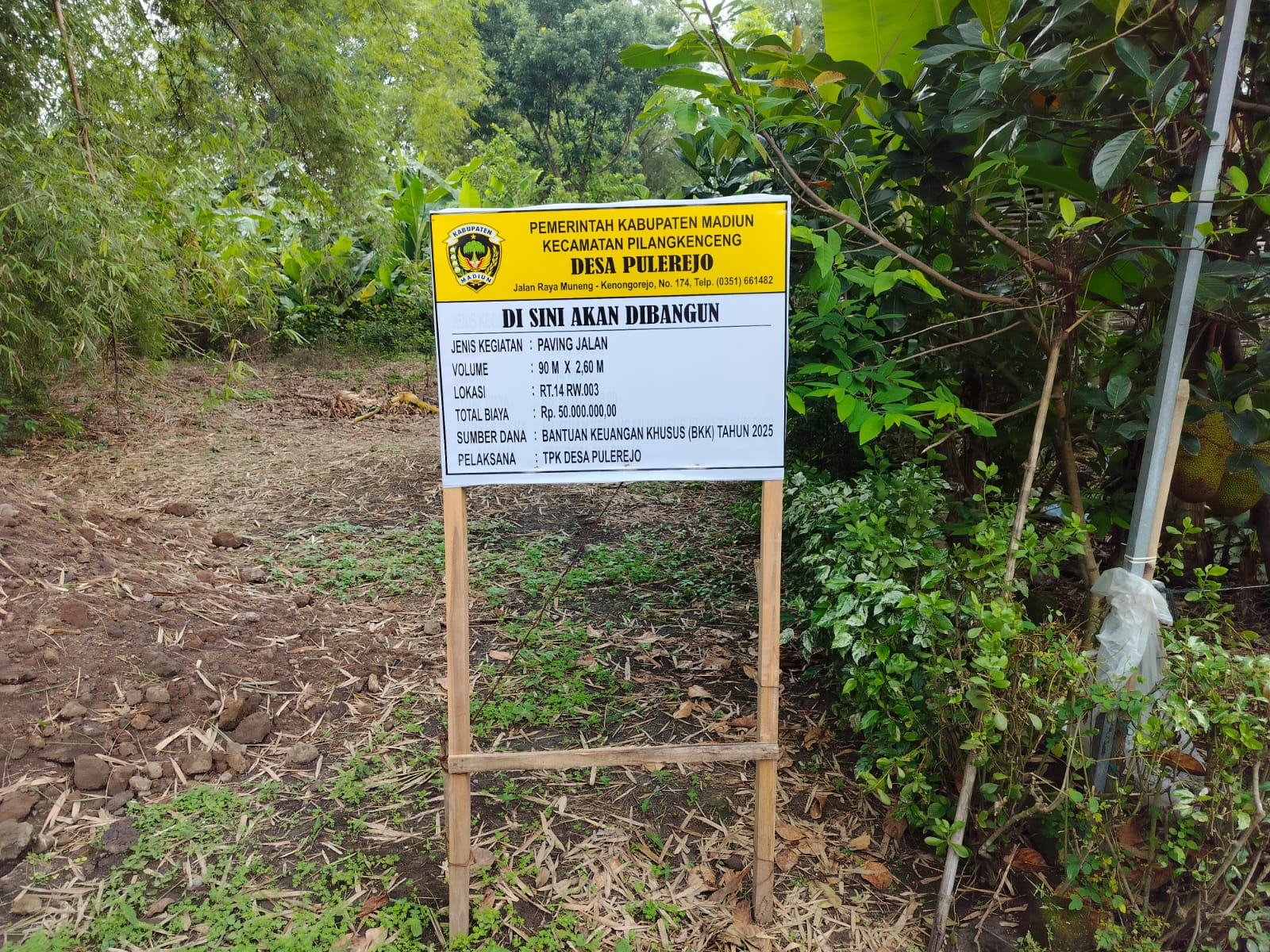 Madiun,AnkasaPost.Id-Pemerintah Desa Pulerejo, kecamatan Pilangkenceng Kabupaten Madiun mengadakan pembangunan infrastuktur yaitu Pavingisasi Jalan. Kegiatan ini yang berlokasi di RT14/ RW03 dengan volume pembangunan 90MX 2,60M, dengan anggaran Rp 50.000.000,- Yang Bersumber dari Bantuan Keuangan Khusus (BKK) tahun 2025. Dengan pengerjaan dari Tim Pelaksana Kegiatan (TPK ) dengan melibatkan partisipasi aktif masyarakat setempat.
