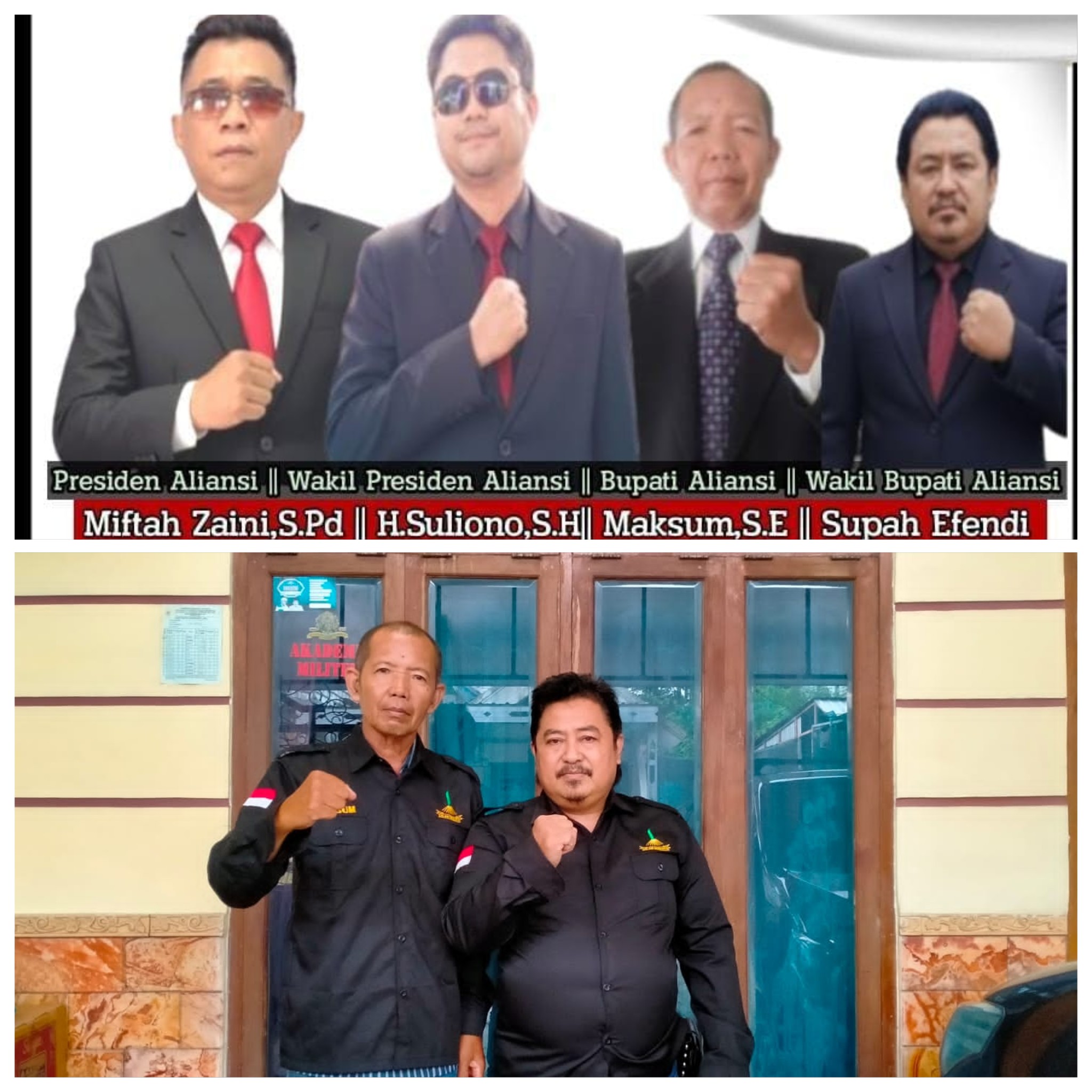 Bapak Mifta Zaini SPD presiden dan Suliono SH wakil presiden aliansi Alam bersatu jaya Indonesia yang bermarkas di kantor pusat Lamongan Jawa Timur Indonesia
