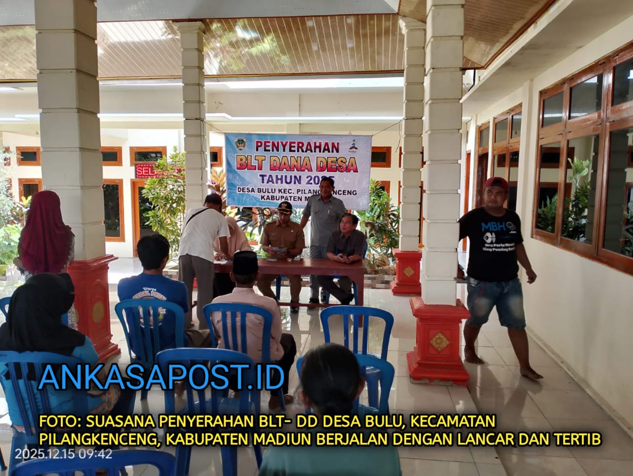 Prosesi penyaluran BLT-DD yang berlangsung di Di balai Desa Bulu berjalan dengan lancar dan tertib.Penyerahan tersebut diserahkan lansung oleh kepala desa Ismilah Suciati, S.Sos., serta disaksikan BPD setempat, tak lupa juga para penerima bantuan, Senin( 15/12/2025).