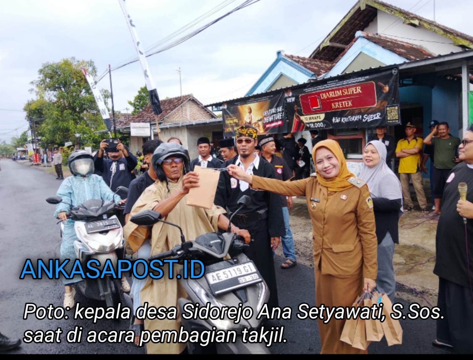 Madiun,AnkasaPost.Id-Bentuk kepedulian antara sesama di penghujung bulan Ramadhan 1447 H yang penuh berkah, Pemerintah Desa Sidorejo , kecamatan Kebonsari, kabupaten Madiun mengadakan kegiatan bagi-bagi takjil kepada masyarakat. Kegiatan ini bertempat di jalan desa Sidorejo , pada bulan yang lalu tepatnya 16 Maret , seperti yang diutarakan Kepala Desa Sidorejo,Ana Setyawati, S.Sos , kepada awak media saat ditemui di ruang kerjanya,kamis( 16 /4/2026)