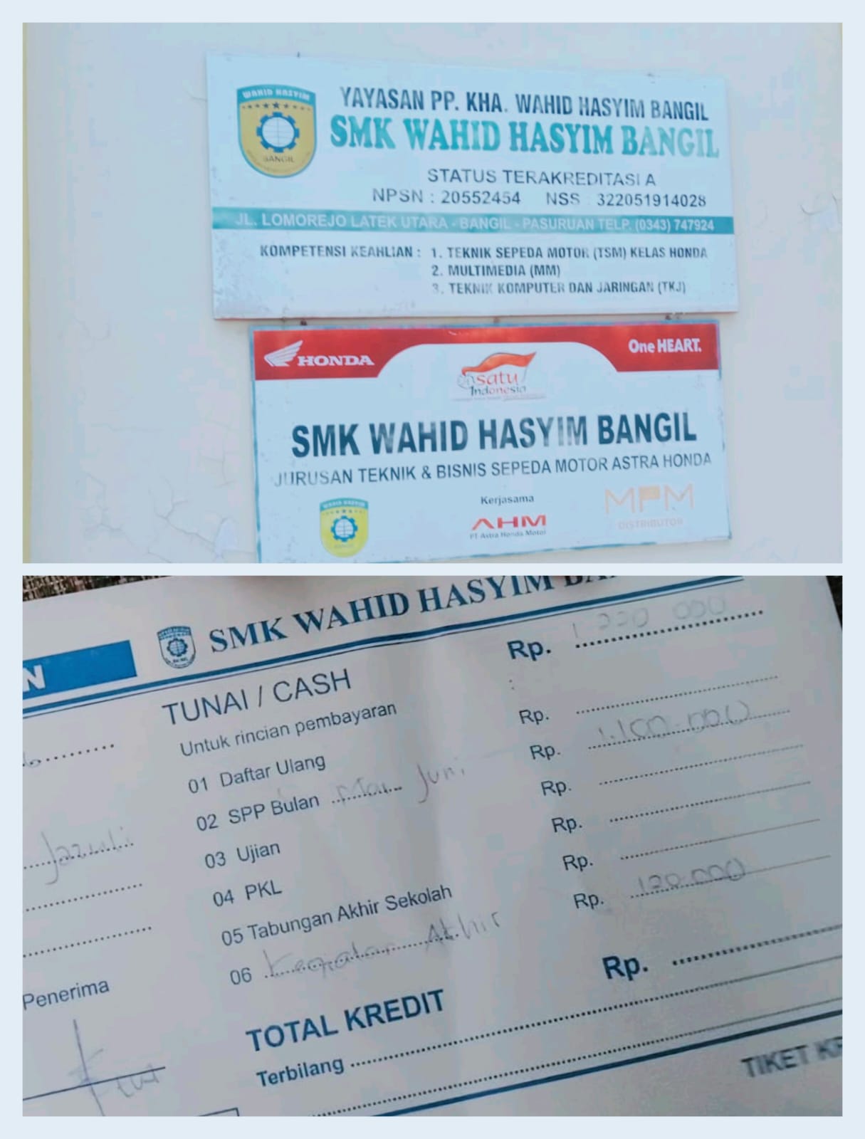 Awak media berusaha terus mengkonfirmasi pada Kepala Sekolah SMK Wahid Hasyim Muh. Anwar Zain, keterkaitan administrasi sebesar Rp. 1.200.000, yang harus diselesaikan oleh alumni yang bernama M Nur Jajuli, yang jadi pertanyaan kenapa pihak SMK Wahid Hasyim Bangil barani menahan dokumen milik siswa?, sudah pasti penahanan dokumen adalah tindakan pidana.