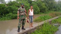 Babinsa Serma Ach. Saifi bersama perangkat Desa Sidomulyo pantau aliran air di wilayahnya.