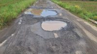 Akses Jalan Pendidikan SMPN 1 Bumi Agung Banyak Jadi Kubangan.