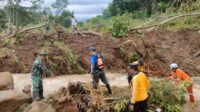Petugas Gabungan Polres Jombang, Kodim 0814 dan Pemkab Jombang Bersihkan Material Longsor yang Menutupi Sungai Kali Maling di Jombang