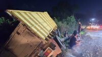 Na,as, Mobil Bermuatan Kayu Bermaksud Menghindar Justru Celaka.