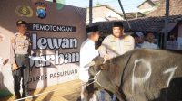 Polres Pasuruan Bagikan 750 Paket Daging Kurban kepada Warga Sekitar